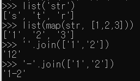 join은 list를 str로 만들 때 사용하는데, 원소들이 str이어야 사용할 수 있다.
