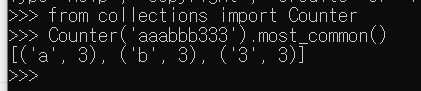 collections의 Counter(iterable)는 list, dict, str 등 iterable에서 각 원소가 몇 번씩 사용되었는지 세준다. 그리고 most_common()은 많이 사용된 순서대로 (key, value) 형태로 리턴해준다.