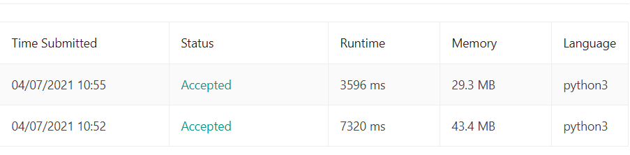 처음 풀었을 때 통과되긴 했는데 너무 느려서 확인을 해보니 가지치기(프루닝)를 안해줘서 그런거였다. 이미 거리를 구한 노드를 제외하고 방문하도록 수정하니 Runtime과 Memory가 모두 절반으로 줄었다.